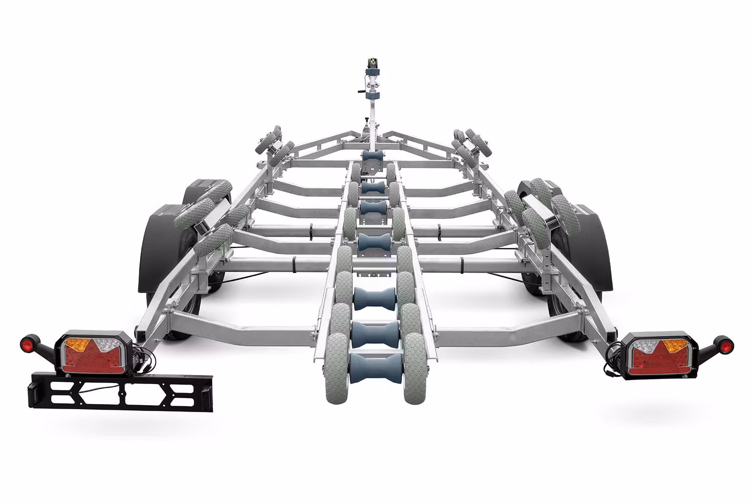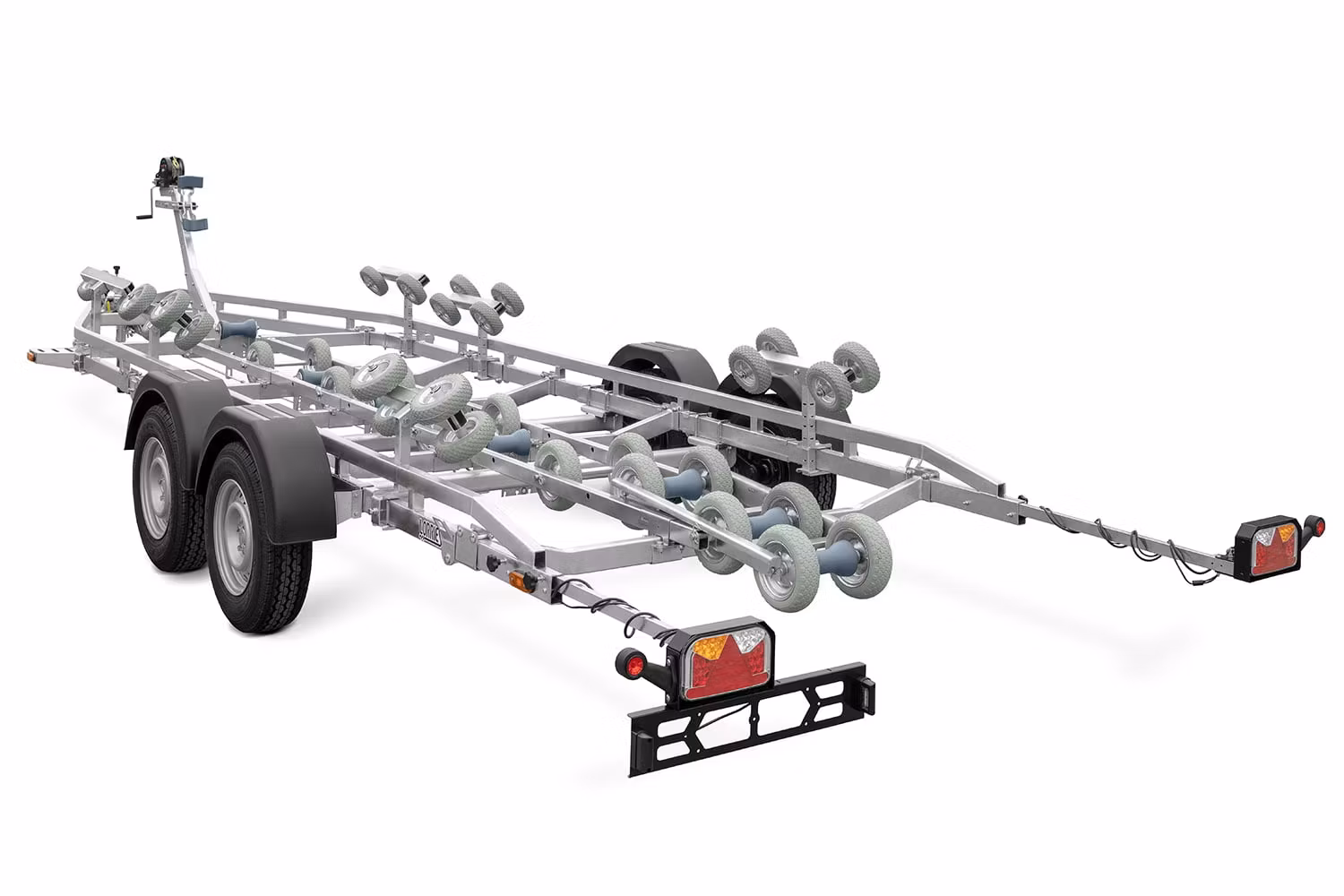 Släpvagnskonstruktionen är svetsad av stålprofiler, med ytterligare ramarmering, vilket garanterar släpvagnens stabilitet och hållbarhet. Med detta kommer varje båt att vara säker under transport. Släpvagnens stålelement genomgår en varmförzinkningsprocess, med vilken stålet får en skyddande beläggning som stärker den mot mekanisk skada och korrosion. Därför kan den lätt stå i regnet eller komma ut i vattnet.